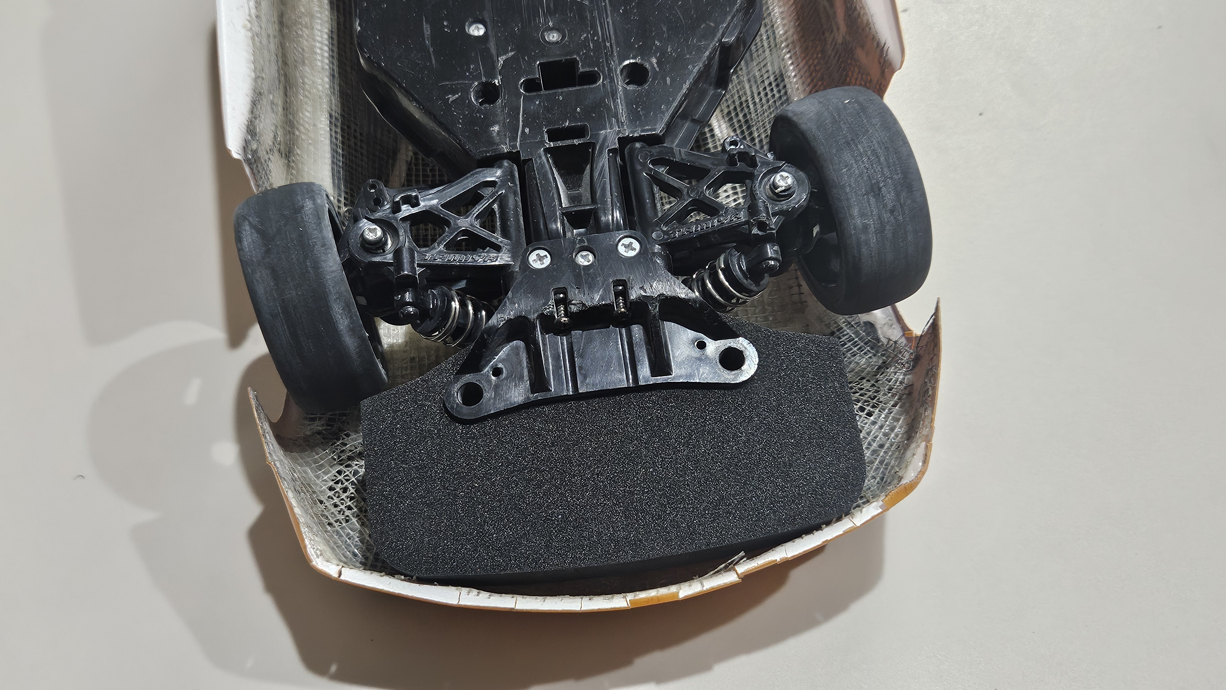 프론트 범퍼 스펀지랑, 바디 사이에 공간을 줄여서, 충격시에 바디와 스펀지가 동시에 충격을 흡수하여, 바디와 샤시를 조금이나마 더 보호해줄 목적입니다.